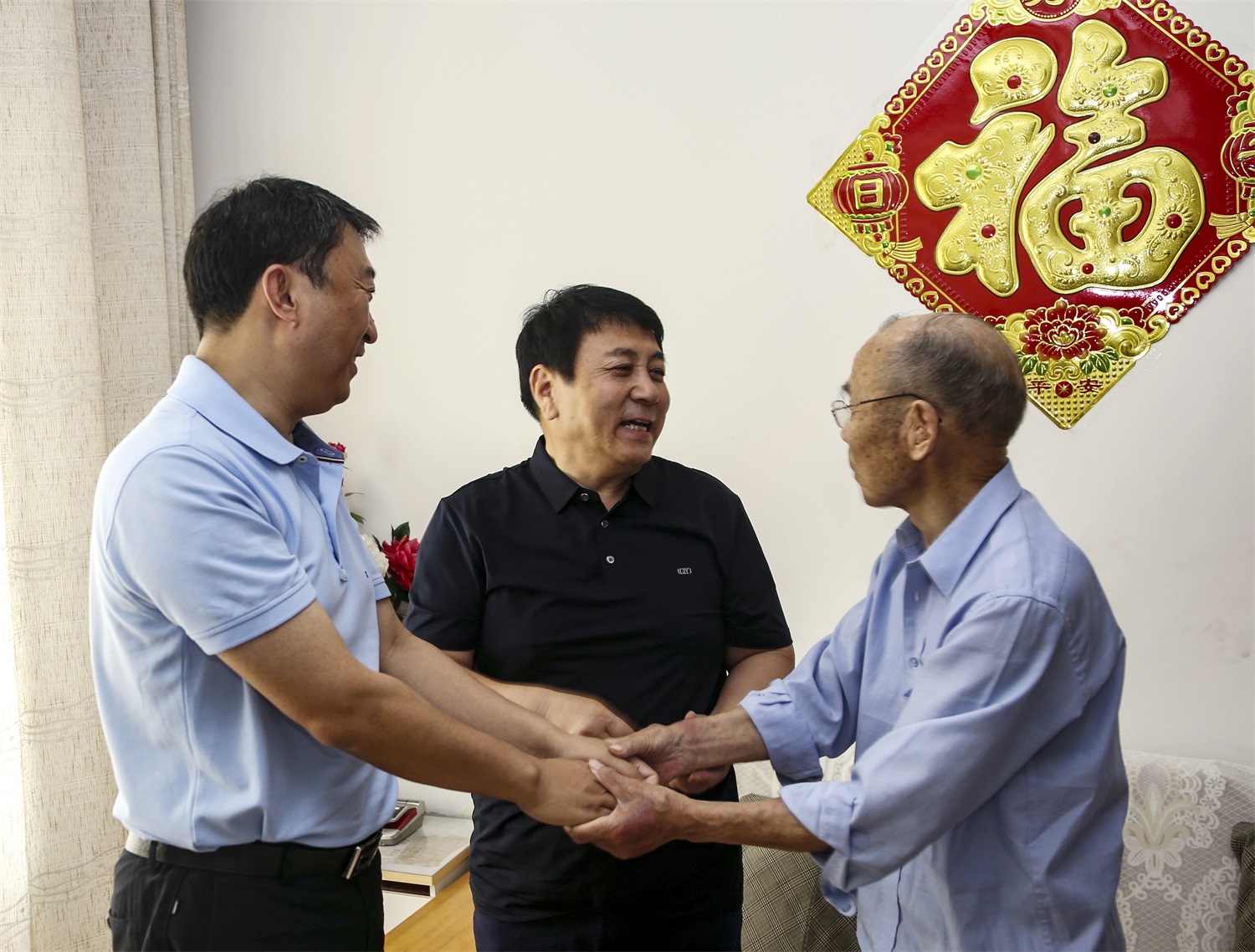 每到一家,牛正澤和王哲波都與他們促膝交談,關(guān)切詢問他們的身體狀況、生活情況和存在的困難,感謝他們?yōu)楣景l(fā)展作出的貢獻(xiàn),并向老同志們介紹近年來公司發(fā)展情況及黨建工作情況。同時(shí),希望他們保重身體,以豐富的經(jīng)驗(yàn)和飽滿的熱情繼續(xù)發(fā)揮余熱,關(guān)注企業(yè)發(fā)展,支持企業(yè)發(fā)展。
